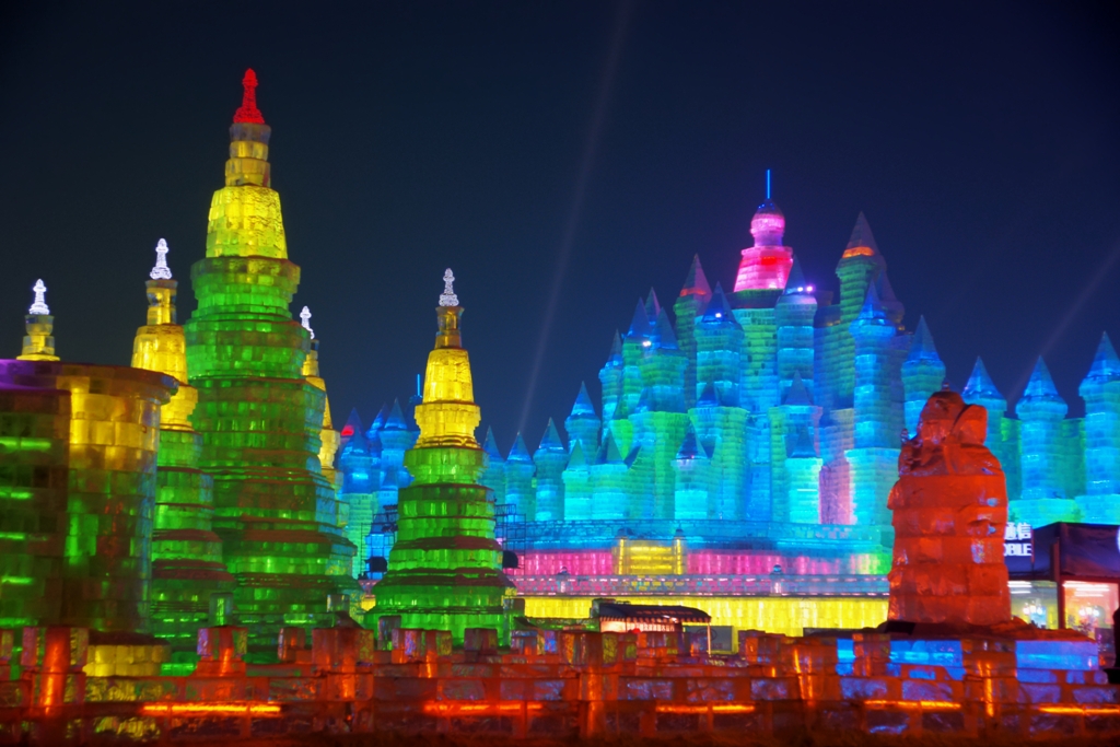 1963 wurde in Harbin das erste Mal das Eis Festival durchgeführt, jedoch während der Kulturevolution unterbrochen. !983 wurde es dann wieder aufegenommen und erfreut sich seit dem immer grösserer Beliebtheit. In 2001 fusionierte das Eis Festival mit dem Internationalen Skifesitval und trägt seither den Namen Harbin Internationales Eis und Schneeskulpturen Fest oder Harbin International Ice and Snow Sculpture Festival. Jedes Jahr werde mit viel Aufwand gigantsiche Schnee und Eisskulpturen modelliert. Das Festival ist in zwei Teile unterteilt, das Schneeskulpturenfest auf der Sonneninsel oder Sun Island im Songhua Fluss, das tagsüber geöffnet ist, und die Eis und Schneewelt oder Ice and Snow World, die abends zugänglich ist. Für die Eisskulpturen werden mit Sägen, Klauen, Meisseln und Hämmern – also genau wie in der Eingangsszene des Disneyfilmes Frozen – die Eisblöcke aus dem Eis des Songhua FLusses herausgeschnitten und dann auf dem Gelände von den Künstlern zu gigantischen bis zu üeber 30 Meter hohen und 200 Meter langen Skulpturen geformt. Farbige Spots, Lampen und Strahler ergeben mit den phnatsievollen Konstruktionen eine imposante Märchenwelt, die den Protagonisten von Frozen auf jeden Fall gefallen hätte. Das Eisfestival beginnt in der Regel anfang Januar und besteht bis anfang Februar.